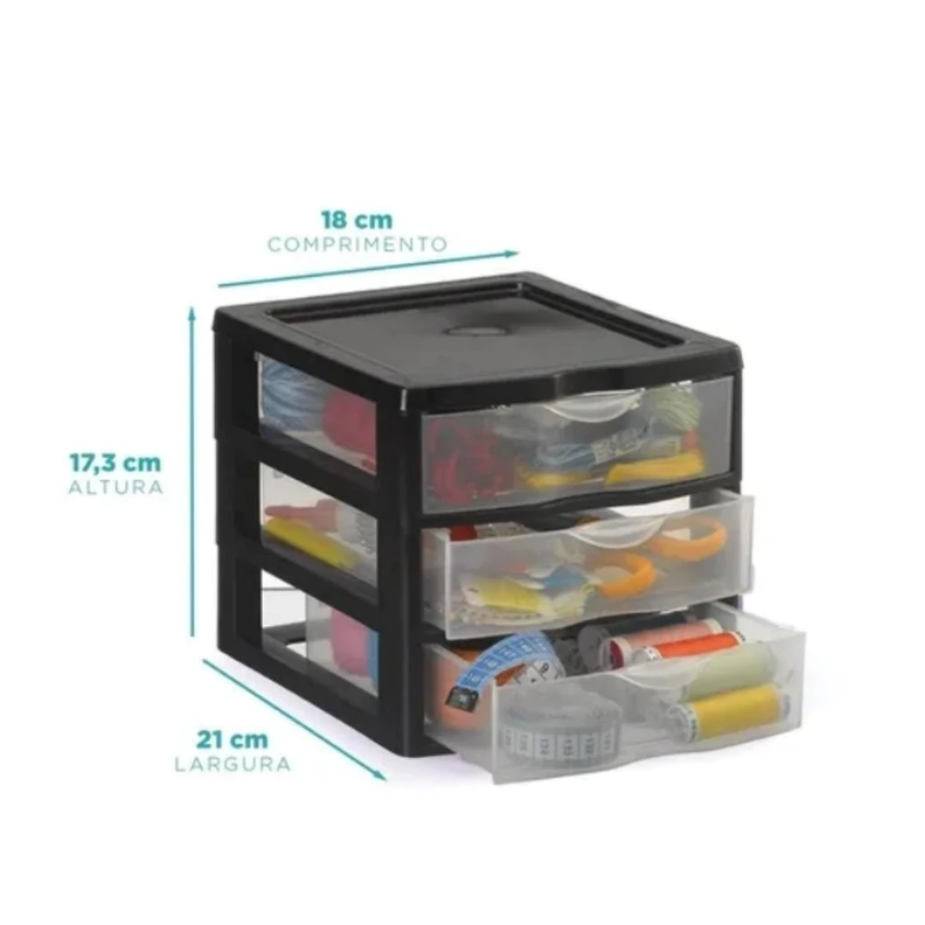 Gaveteiro Pequeno com 3 Gavetas Preto