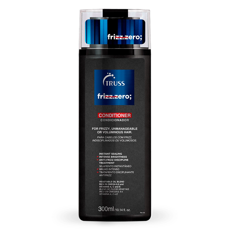 O Condicionador FRIZZ ZERO TRUSS um condicionador Antifrizz para quem deseja maior alinhamento e controle dos fios. Se o volume excessivo e o frizz te incomodam, você encontrou o produto ideal, indicado para cabelos volumosos e com muito frizz.